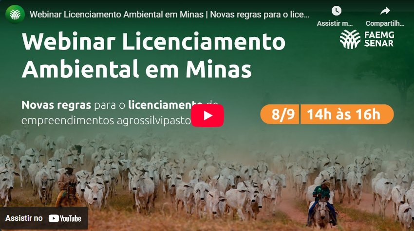 O Webinar sobre a Deliberação Normativa Copam nº 258/2025, realizado pelo Sistema Faemg Senar em parceria com a SEMAD, foi disponibilizada em nosso canal do YouTube.