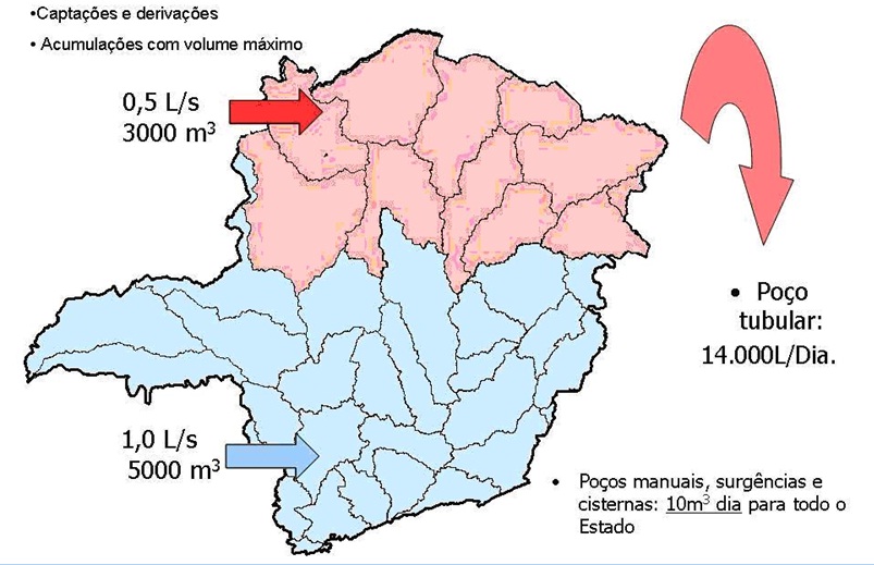 Em todo o Estado são consideradas como insignificantes as captações subterrâneas citadas com volume menor ou igual a 10 m3/dia, de acordo com DN CERH MG nº 09/2004.