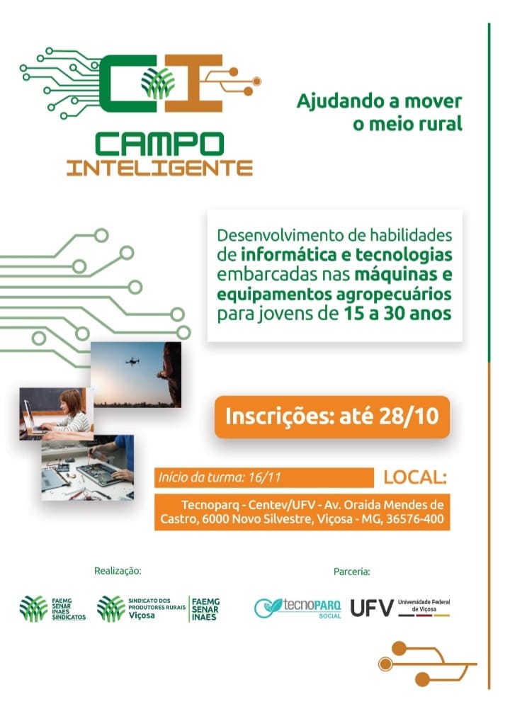 Em mais uma ação para preparar os produtores para esse cenário, o Sistema Faemg, em parceria com o Sindicato dos Produtores Rurais de Viçosa e o TecnoPARQ da Universidade Federal de Viçosa (UFV), vai oferecer, em Viçosa, o Programa Campo Inteligente.