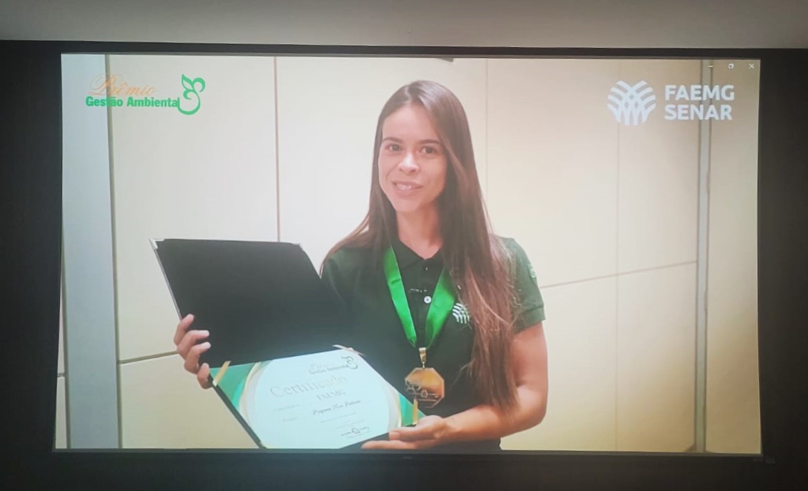 Por vídeo, a gerente de Sustentabilidade, Mariana Ramos, agradeceu pelo prêmio concedido ao Sistema Faemg Senar